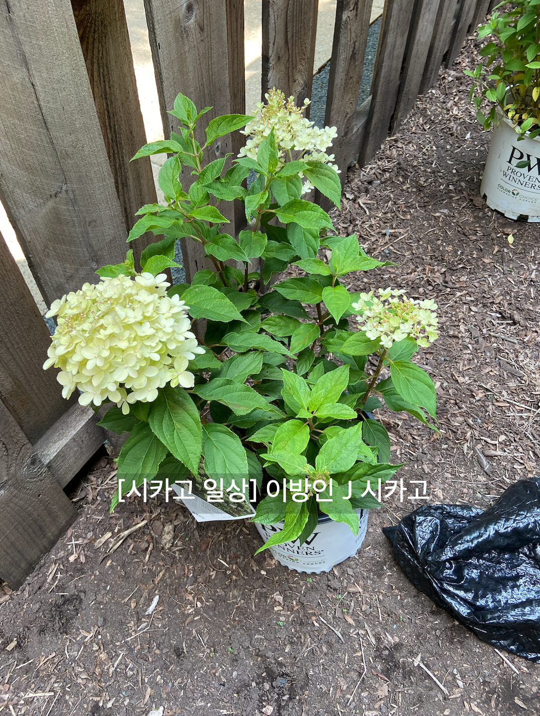 저희가 산 식물들은 Thunderbolt Box Honeysuckle, Hydrangea Paniculata Little Quick Fire, Panicle Hydrangea Lime Light, Panicle Hydrangea BOBO, Rhododendron, 깻잎 등입니다. 햇빛을 강하게 받는 곳이 아닌 그늘에 있어도 잘 자란다고 해서 부모님이 골라주셨어요. 한개가 더 있는데 이름을 모르겠네요. 저희 집 patio에는 전부다 햇빛이 들진 않고 반 정도가 들어요. 다행히 식물이 있는 곳에는 해가 잘 드는 편입니다. 처음에 혹시 몰라서 해가 없이도 잘 자라는 식물들로 배치를 했어요.