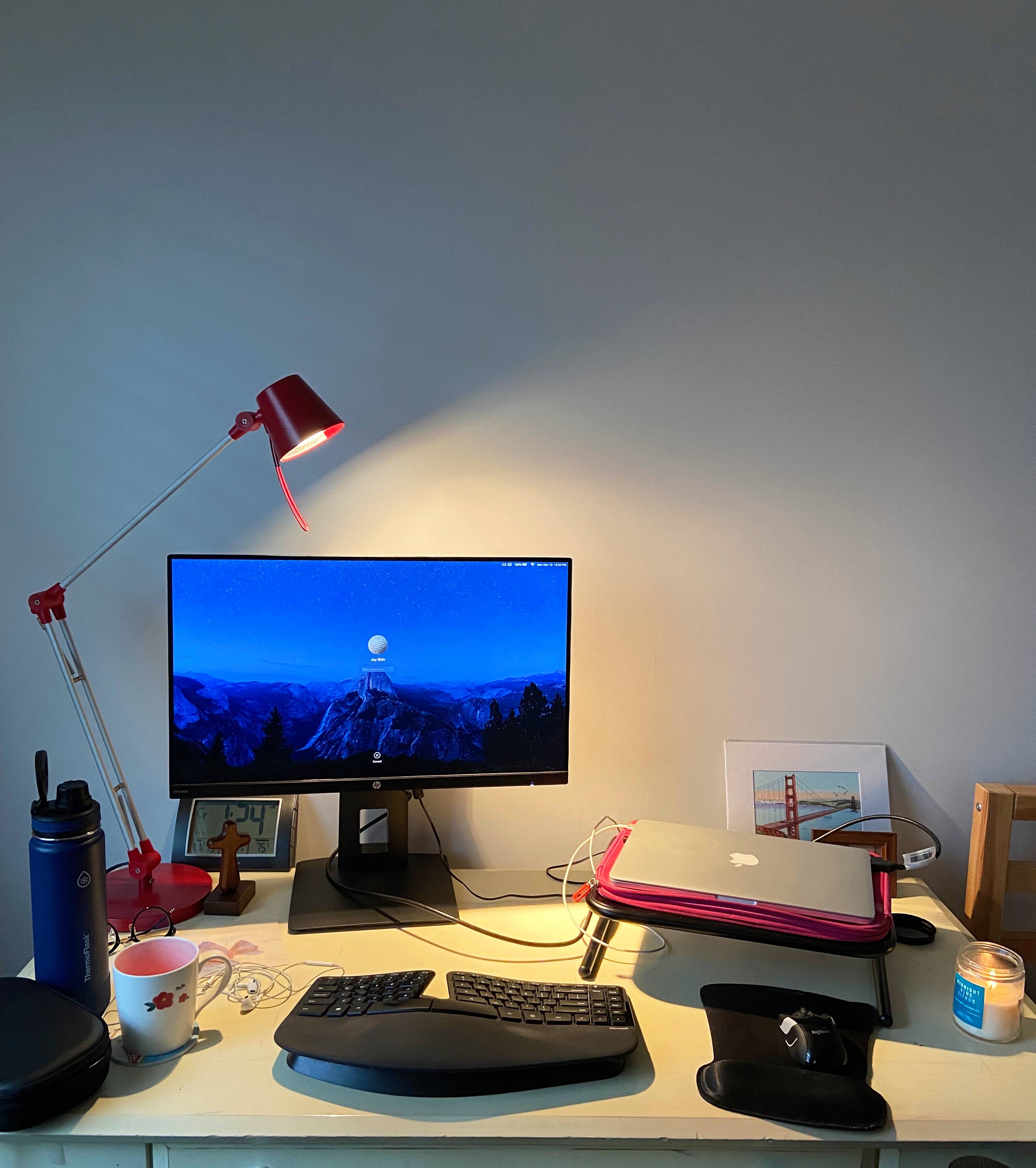 그래서 침실에 있는 책상에서 공부를 해보자고 모니터, 랩탑, 키보드, 마우스 등등 공부에 필요한 것들을 옆 방으로 다 옮겼습니다. 책상이 훨씬 작고, 의자와 책상 높이가 잘 맞지 않아서 가끔 불편한 느낌은 있지만 공부가 너무 잘되는 것이었습니다. 왜 그럴까 곰곰이 생각해보니 책상이 벽을 보고 있어서 그런 것 같았습니다. 시선이 분산될 일도 없고, 하얀 벽만 보고 공부를 하고, 벽은 사실 모니터에 거의 가려지지만요. 집중력이 훨씬 올라가는 느낌이 났고, 공부도 그만큼 잘 돼서 하루에 세운 목표치를 모두 달성할 수 있었습니다 :)